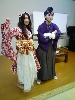 下駄をはかせるのはもう自分の中では決定事項だったのですが(この格好に草鞋は無いだろうってことで)、動きが制限されるので稽古中から履いて動いてもらっていました。
