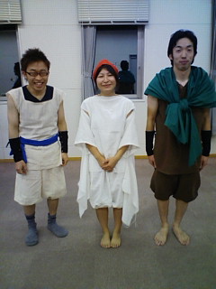 織りが荒いので、そのままだと透けてしまって色々と問題だったので、男性陣は黒い下着をつけました。鶏のなっちゃんは服が白いため、中が黒いと目立つので(まあそれも腹黒い感じで役に合っていたかもしれませんが)中には白いキャミを着ていますよ。