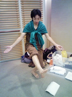 かさ地蔵役の圭織ちゃんは、前回の「レジェンドオブジャパン」オリジナルメンバーの1人です。学会で忙しい中参加してくれました。私も後半はあまり稽古場にいられず、なかなかお話できなかったことが残念です。それでも、何度か雑談した際にわかったのは、物静かにお話する知的な子で、とても「Go to hell!ギャーハッハッハ!」というような女の子でないことは確かだということです。役者になるとガラッと変わるのですごいなぁと思った。それにしても、素は一体どういう子なのか気になります。